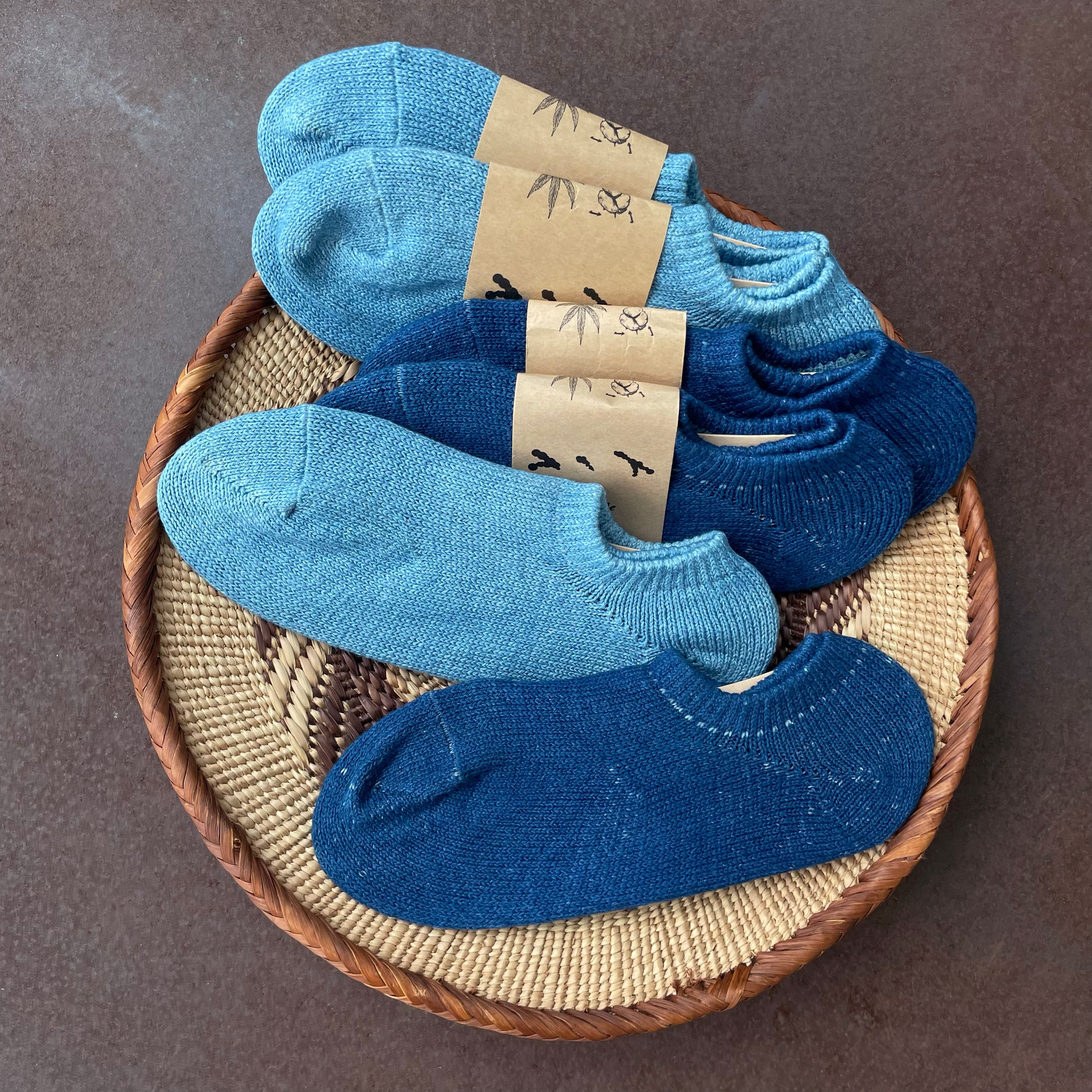 草木染めで活動されていましたが、藍染の勉強を経て、おひとりで畑で藍を育て蒅を作るところからされています。種から染めまで循環した果てしない工程はとても尊く、saredoの製品でぜひ染めていただきたいとお願いして実現しました。