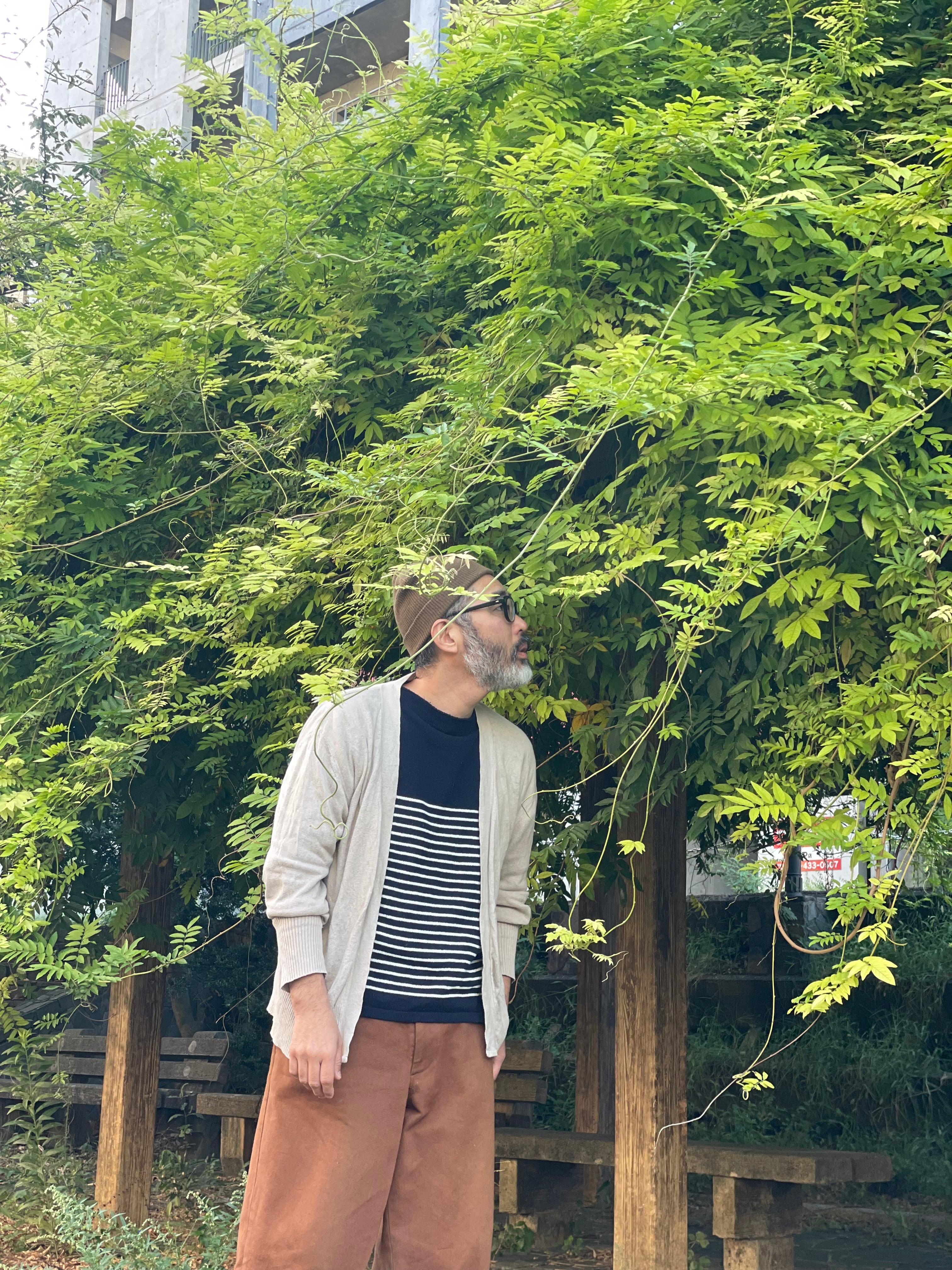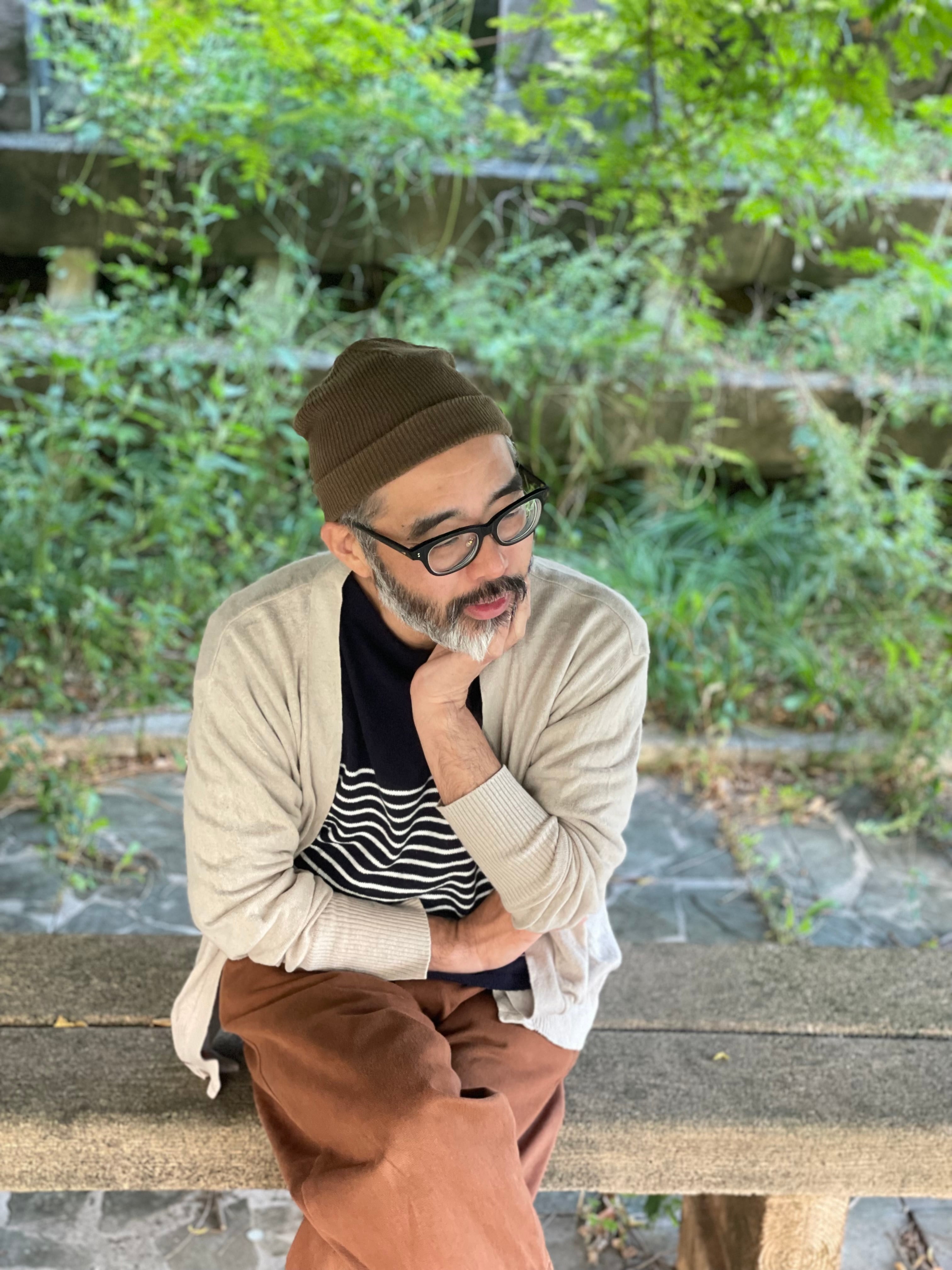 四季のあるこの国が、シーズンレスな亜熱帯気候に近づく中で、再生超長綿糸で編んだ季節を問わないトロピカル(=トロみがあって光沢があり軽い)なカーディで、ダンディでエレガントな着こなしを。