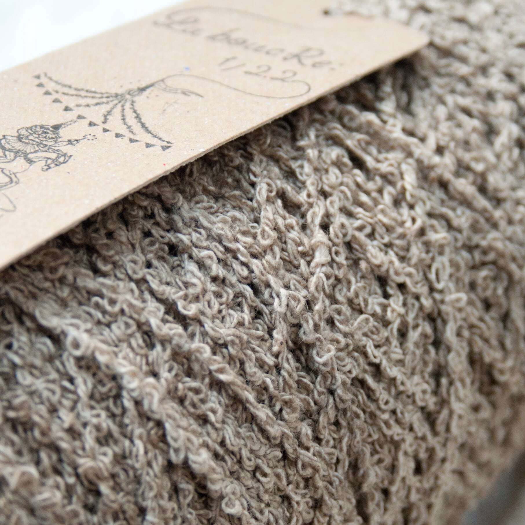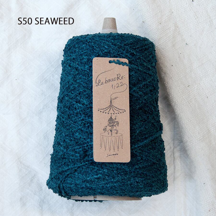 bouclé(ブークレ)とはフランス語で「輪」。落ちわただけで紡いだ saredo のリサイクルコットン100%、文字通り「わたの輪」でできた究極の意匠糸を「La boucRe:」と名付けました。